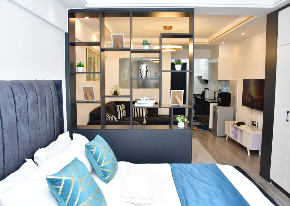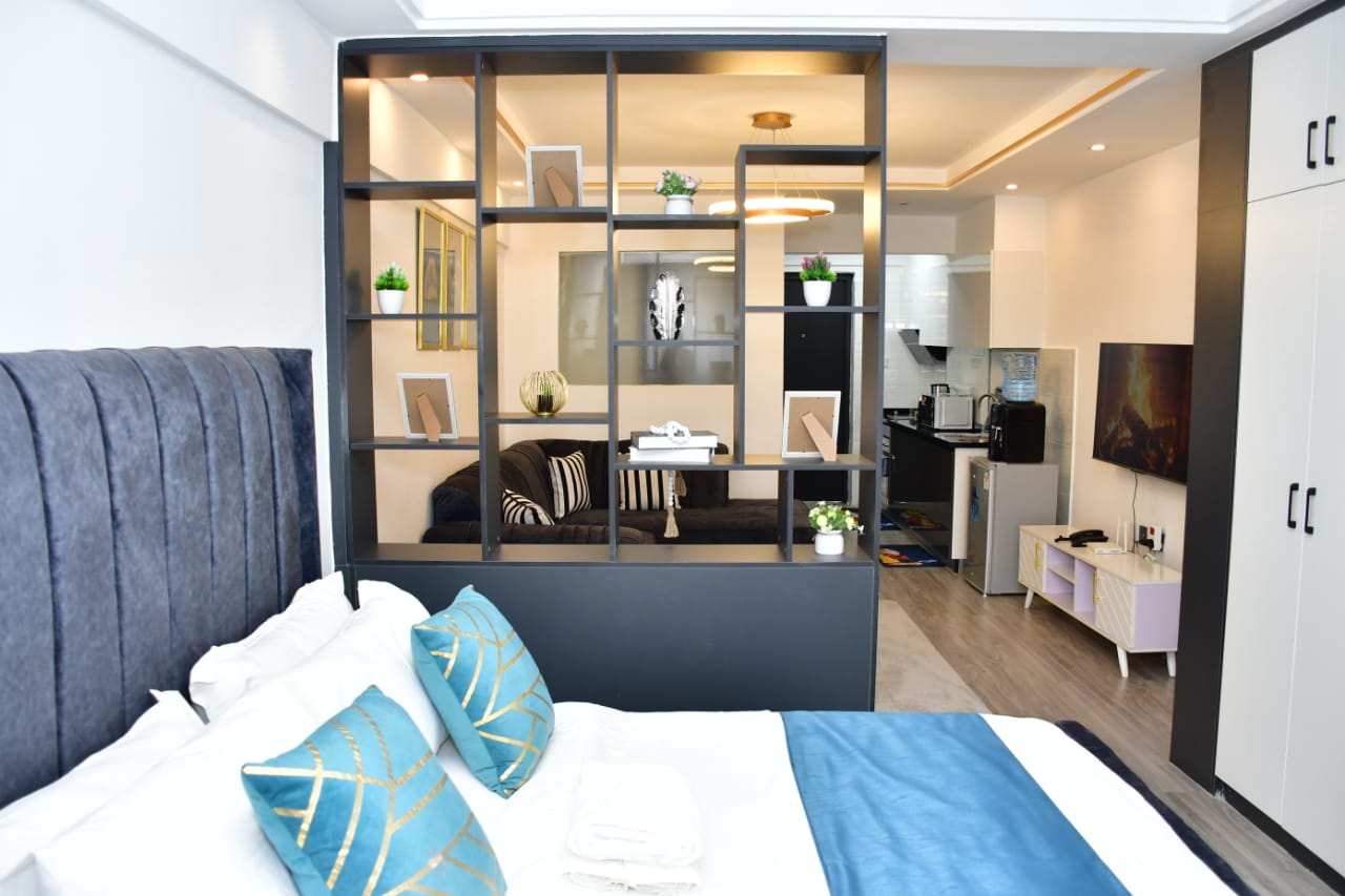This modern studio apartment in Kilimani is an ideal Airbnb accommodation for travelers seeking comfort and convenience in Nairobi. Featuring a fully furnished open-plan design, a modern kitchenette, private bathroom, and a relaxing balcony, the studio is perfect for short stays or business trips. Guests enjoy free WiFi, secure parking, and 24/7 security. Located near popular restaurants, shopping malls, and entertainment venues, it offers easy access to Nairobi’s top attractions. Book this Kilimani Airbnb studio for a stylish, well-located stay in the heart of the city