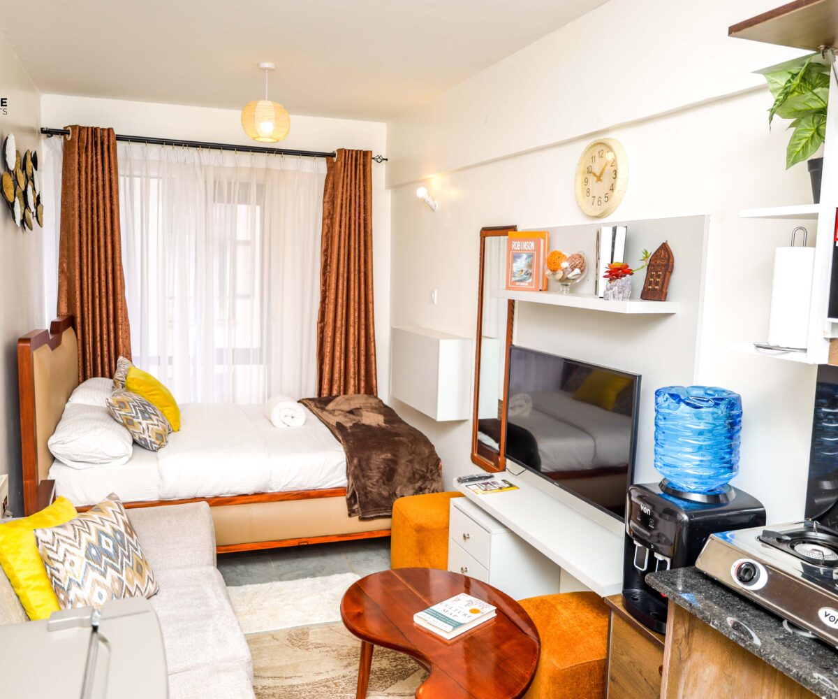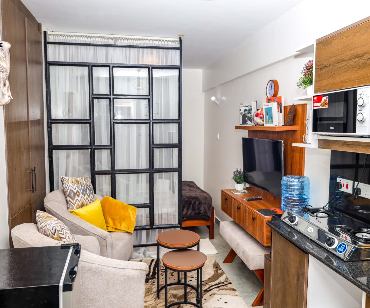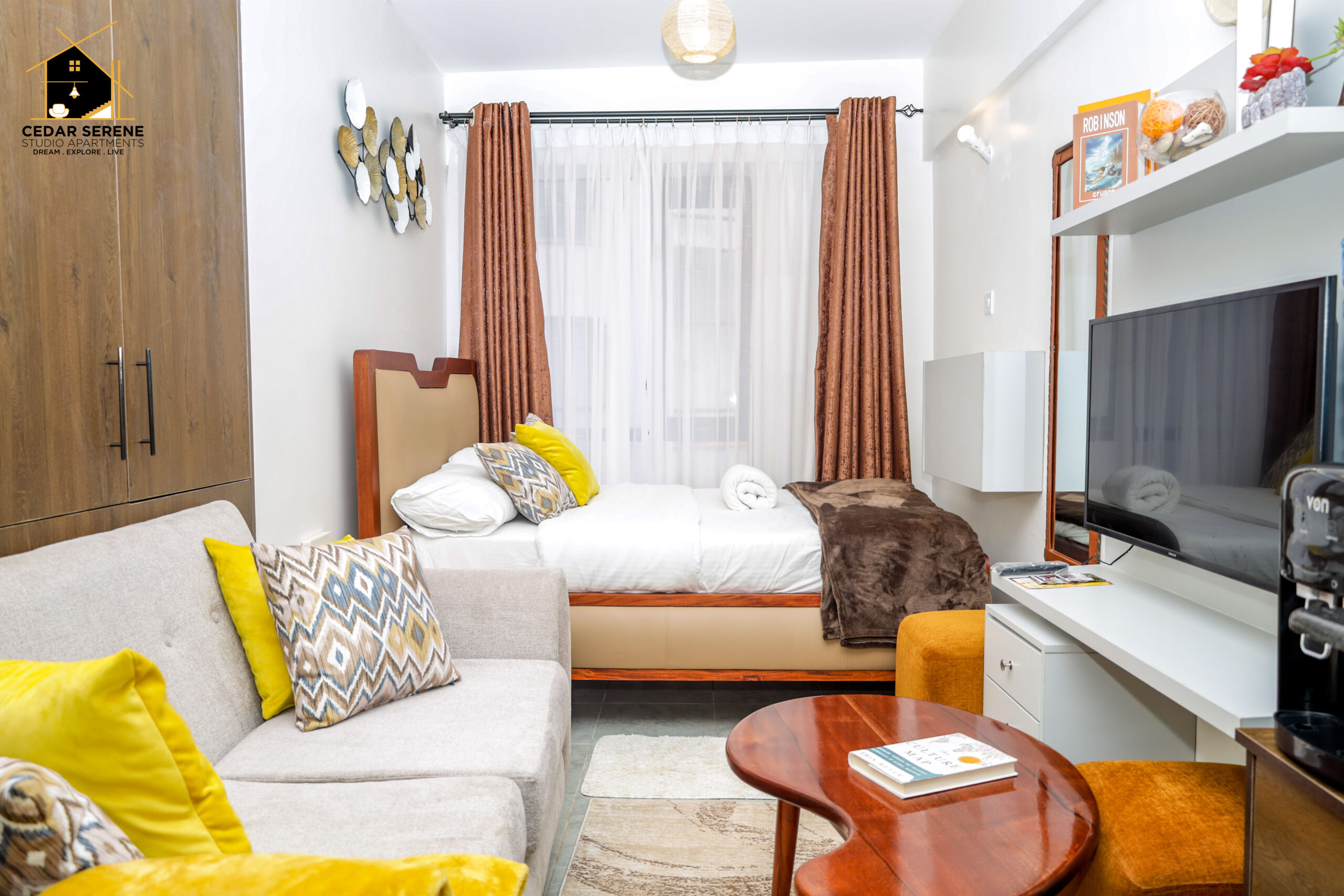 This modern studio apartment on Kiambu Road offers a peaceful getaway with serene garden views, just 12 km from Kenyatta International Conference Centre and 11 km from Nairobi National Museum. Conveniently close to Karura Forest and Windsor Golf & Country Club, both just 3.8 km away, the property features free WiFi, private parking, and a relaxing sun terrace. Select units boast private entrances, workspaces, and well-equipped kitchenettes with a microwave, toaster, and fridge. Each unit comes with a private bathroom, and a convenient on-site minimarket is available. The Lisa Christoffersen Gallery is 4.9 km away, while Wilson Airport is just 16 km from the apartment, making it ideal for travelers seeking accommodation near key Nairobi attractions.